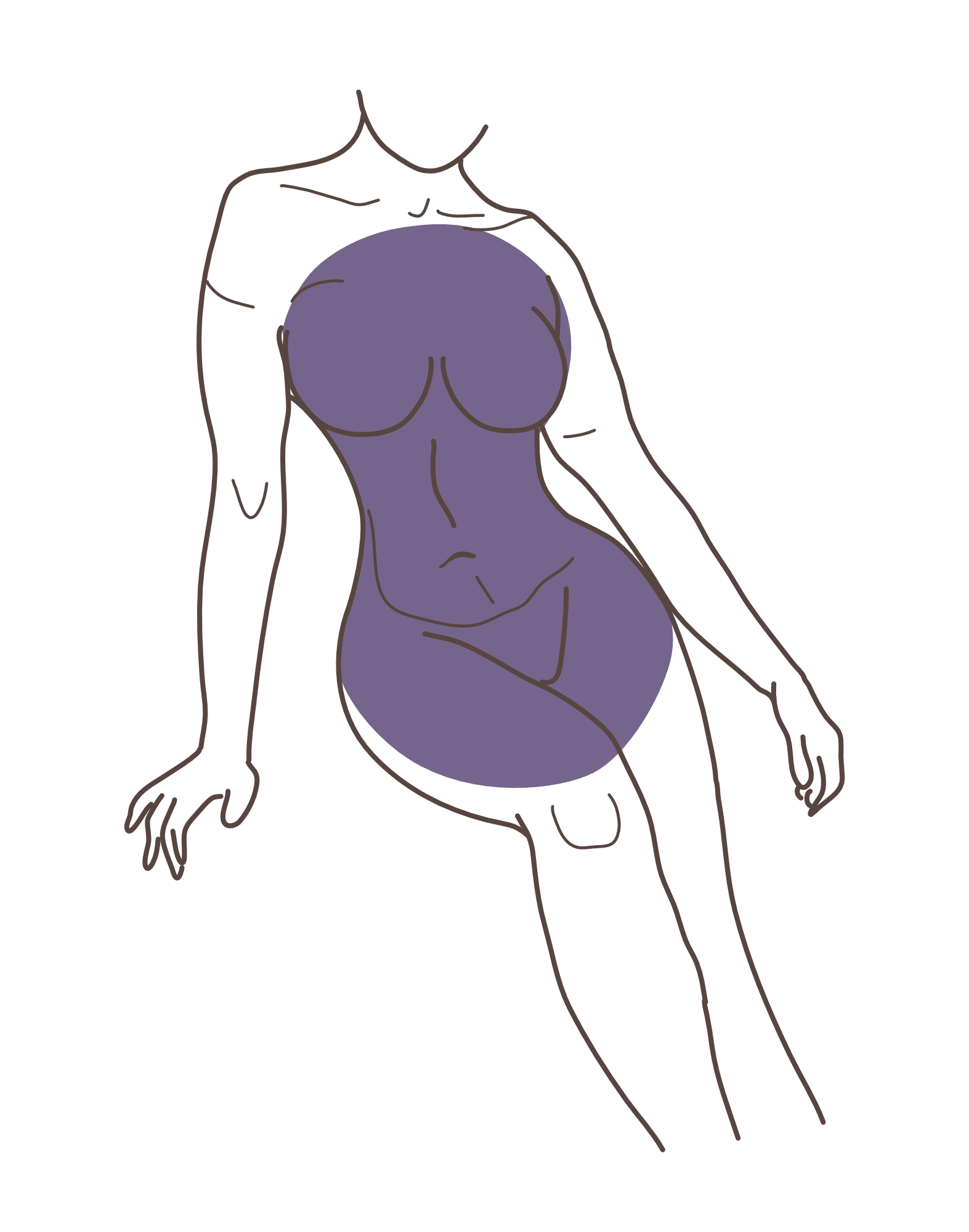 In the hourglass body type, the shoulders and hips are of similar width, while the waist is narrow and well-defined.